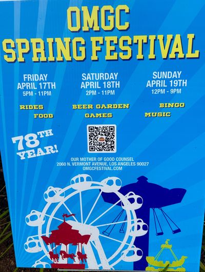 Join us for a fabulous and fun outdoor festival in Los Feliz on Friday April 17, 2026 at 6:00 pm. It's free and great for the whole family. Bring the kids, the folks, friends. The more the merrier and room for all. Literally hundreds attend and this is the 78th year! Very festive event with live music, food booths, carnival rides for the kids, game booths, bingo, beer garden, wine garden, and more.